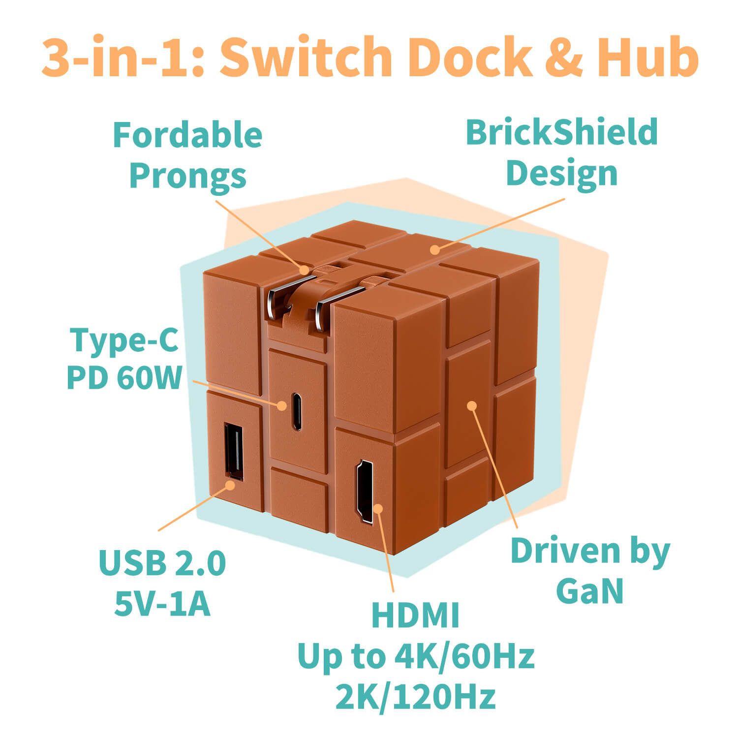The brick style 3-in-1 portable switch 2 dock & charging block